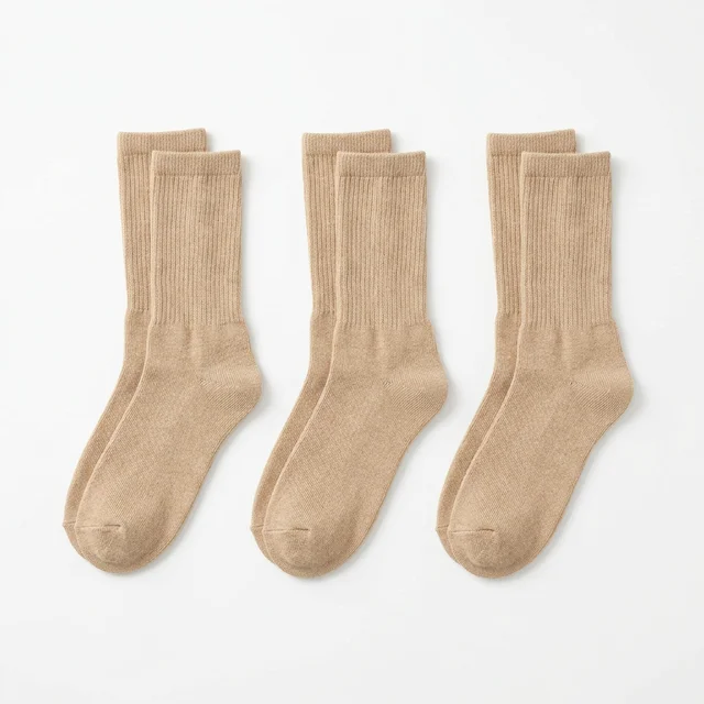 Comfortable mid-calf socks in naturally colored organic cotton. Reinforced heel and toe for durability. Soft elastic cuff stays up without constriction. 100% undyed with natural antibacterial properties (7A-10A) for odor-free wear. Unisex sizing, length, and set quantity fully customizable.