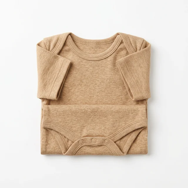 Naturally colored organic cotton baby romper — 100% dye-free and chemical-free. Made from our proprietary colored cotton with natural antibacterial properties (7A-10A grade). Gentle on newborn skin with zero irritation risk. Available in natural brown, green, and white. Fully customizable: fabric weight, size range, packaging, and labeling per your brand requirements.
