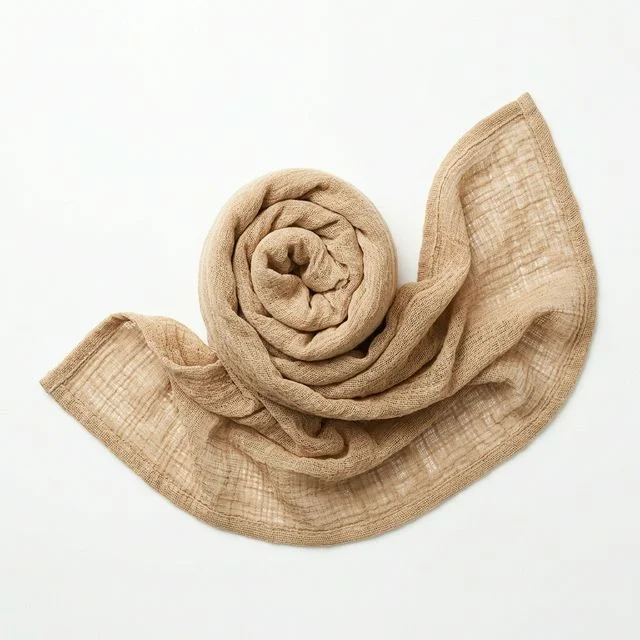 Ultra-lightweight gauze bath towel in naturally colored organic cotton. Multi-layer muslin construction combines quick-drying performance with surprising softness. Gets softer with every wash. 100% undyed with natural antibacterial properties (7A-10A). The modern alternative to heavy terry — ideal for travel, summer, and minimalist lifestyles. Layer count and size fully customizable.